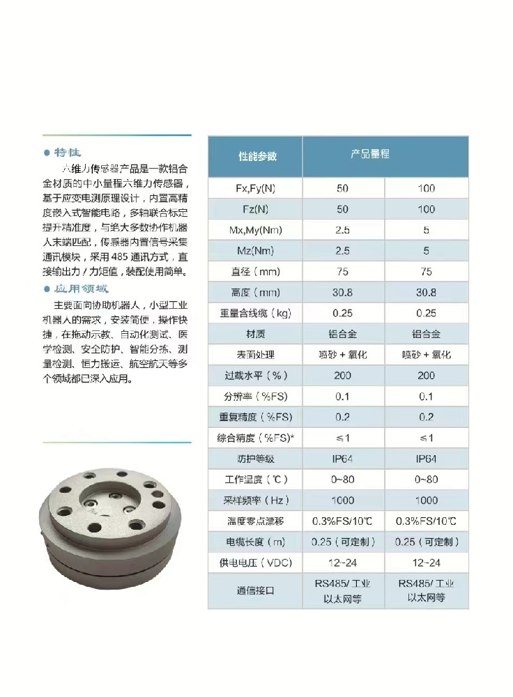 ? ? ? ? 應(yīng)用于工業(yè)機器人末端執(zhí)行器,實現(xiàn)高精度力控操作,例如在裝配、打磨、拋光等工藝中,確保對工件的**施力。